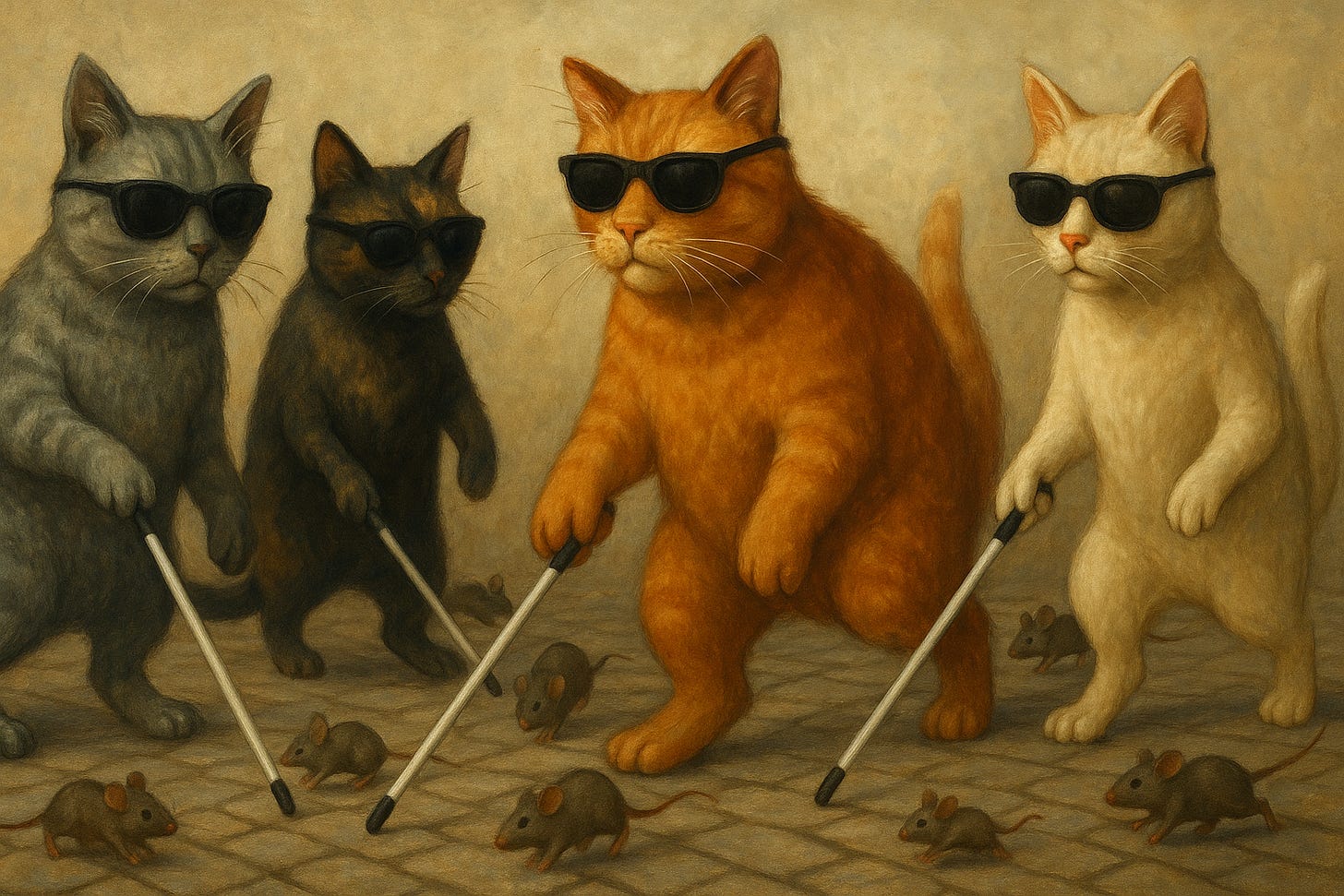 Just as spooky as the horizontally-blind cats, McRaney covers research where participants were supposed to name the cards they were shown.3 They’d say black spades, red heart, black diamonds, black spades, black clubs, red heart. Did you catch the trick? There is no black diamonds, but when the participants were shown cards that had incorrect colours they didn’t recognize them as incorrect. They just named them as if nothing was wrong. However, only once more incorrect cards were introduced, only once the anomalies started piling up, only then did the participants start having difficulties. They couldn’t recognize the once familiar shapes, or even experienced the incorrect cards to be purple rather than black or red.